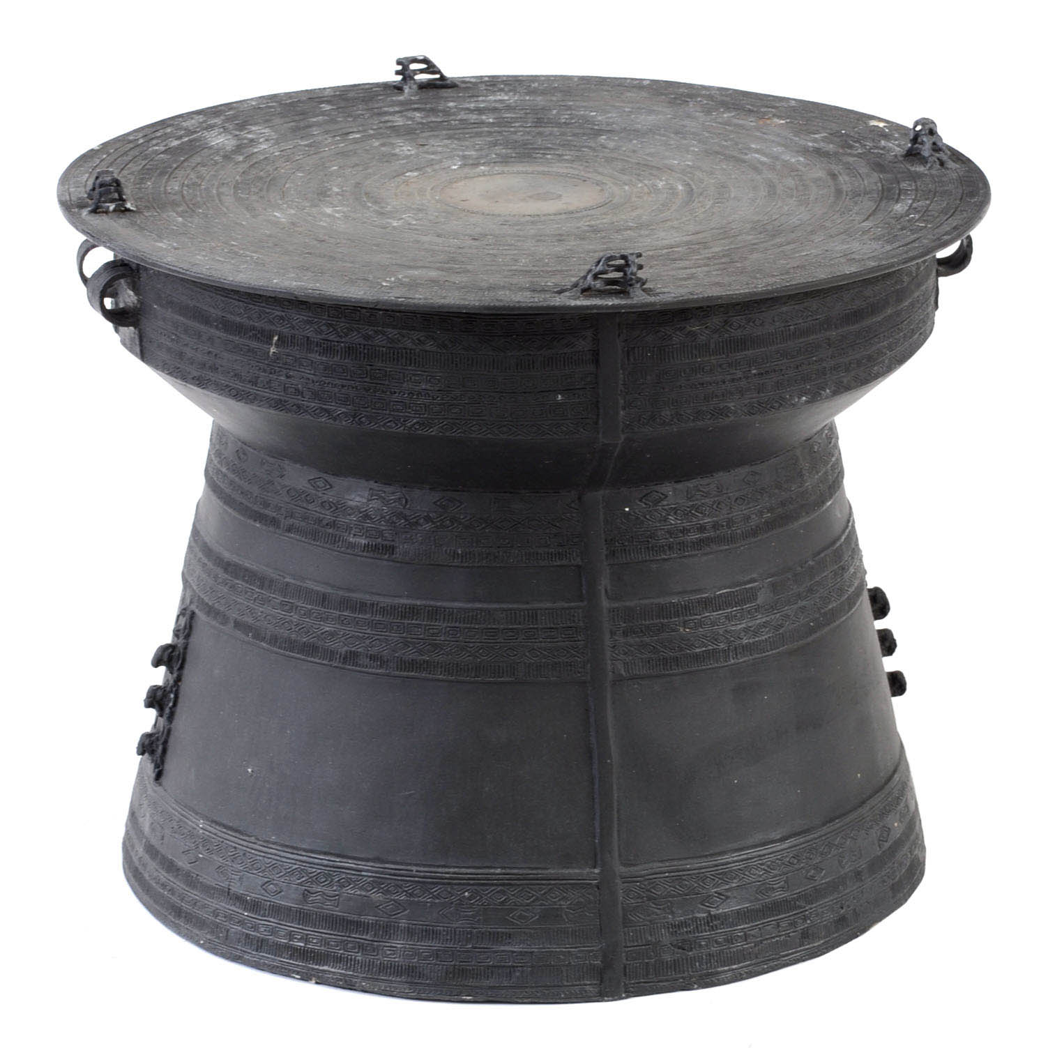drum shaped metal coffee table antique bronze finish